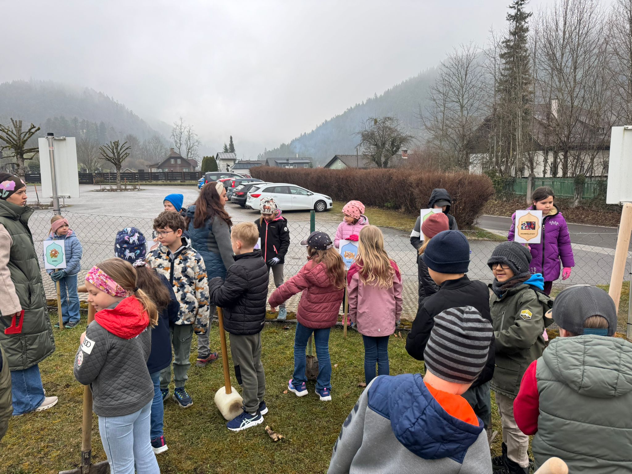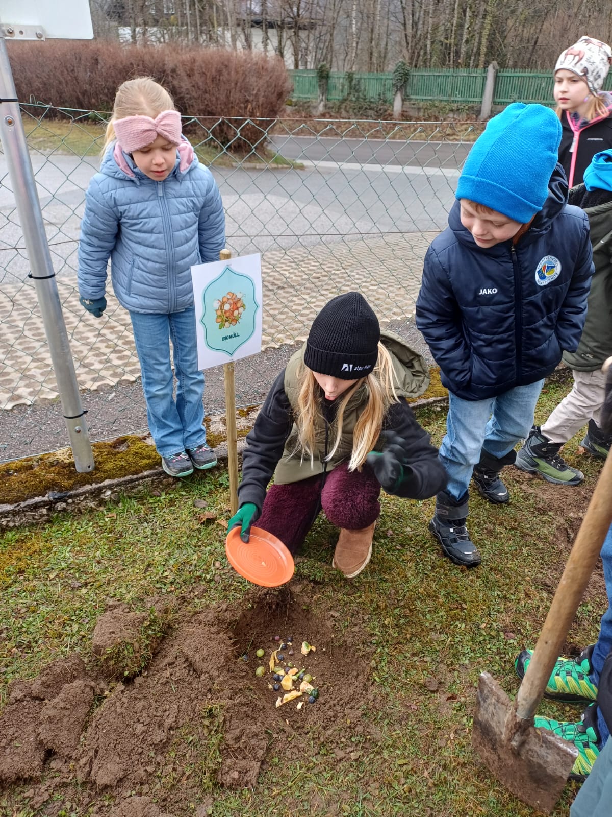 Besonders spannend war der praktische Teil am Ende des Projekts: gemeinsam wurden Löcher gegraben, um darin verschiedene Müllarten wie z.B. Biomüll oder eine Aludose zu vergraben. Diese werden in einem halben Jahr wieder ausgegraben, um zu sehen, wie weit sie verrottet sind.